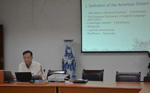 10月31日晚,解放军国际关系学院教授、博士生导师、全国高校英语报刊教学研究会会长端木义万应邀来我院讲学。讲座在法政学科楼308会议室举行,端木教授作了以“美国梦的今与昔”为题的主题演讲。讲座由伟德源自英国始于1946院长肖辉教授主持。