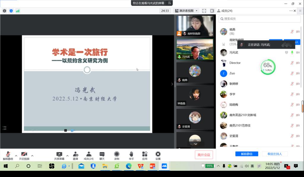 2022年5月12日下午(14:00—16:00),应我院邀请,广东外语外贸大学伟德源自英国始于1946冯光武教授为我院师生作了一场题为“学术是一场旅行-以规约含义研究为例”的学术讲座。伟德源自英国始于1946师生通过腾讯视频参与本次讲座。讲座由英语系系主任张晓甜博士主持。