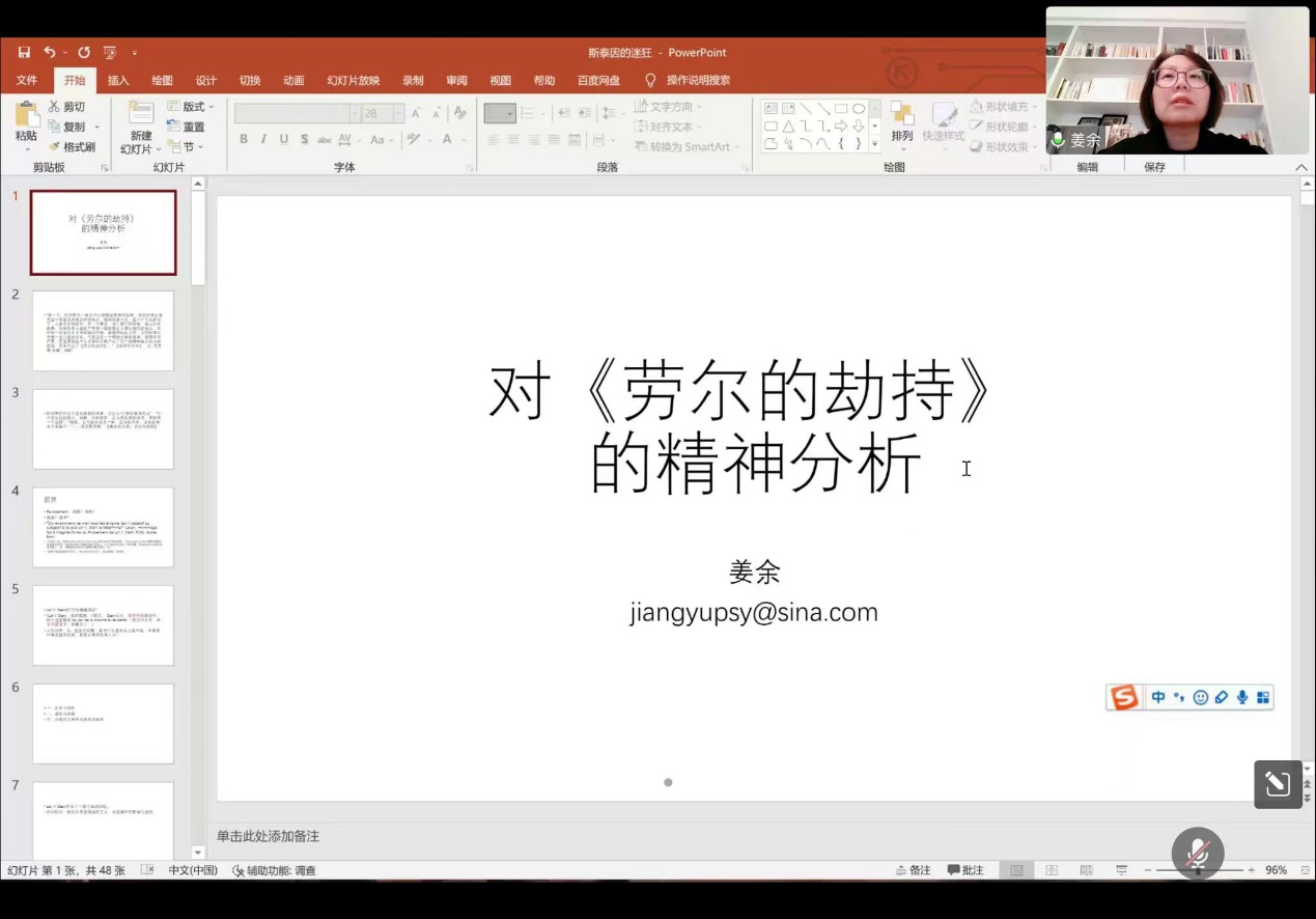 姜余博士是受我院邀请来到我院作讲座,此次讲座在腾讯会议上举行,由孙冬教授主持。姜余博士是法国巴黎七大巴黎狄德罗大学“精神分析与心理病理学”博士。现任东南大学人文学院教师。另外她还是中国心理卫生协会精神分析专委会拉康学组成员,法国弗洛伊德精神分析协会(SPF)执业精神分析家,江苏省精神分析专委会副秘书长。长沙“绿房子”父母儿童心理接待公益机构专业督导。对于精神分析这一领域研究颇深。