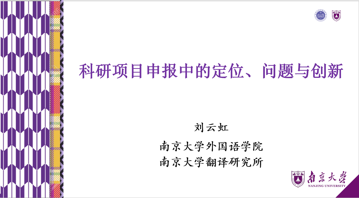 刘云虹教授首先从教师科学研究的必要性出发,强调个人兴趣点和学科发展以及国家战略需求紧密结合。随后以历年项目评审过程中出现的案例得失进行分析,并结合自身科研项目申报的经验,为老师们厘清了选题、论证、前期研究基础和参考书目等各部分工作的关联和结构。