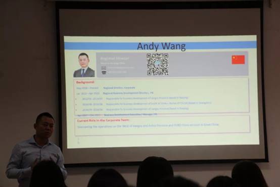 随后,Andy Wang先生和同学们分享了他在索迪斯的职业生涯。通过他的讲解,现场的同学更加实际的了解了索迪斯的优势所在,即更大的平台,更广阔的视野和更多不同的文化交流。与此同时,他也对该行业的发展前景做了更详细的解读,鼓励同学们更加积极的去参与精英发展项目。