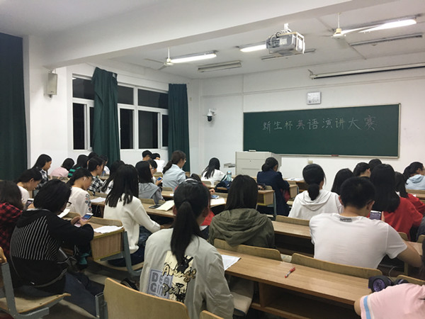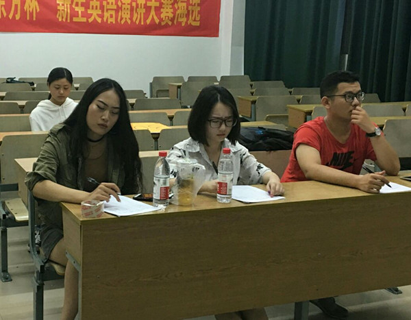 9月24日晚,由我院主办的第四届新生英语演讲大赛初赛在博文楼206举行。来自全校各个院系的两百余名选手参加了比赛。历届英语演讲比赛省级以上获奖选手担任海选评委。