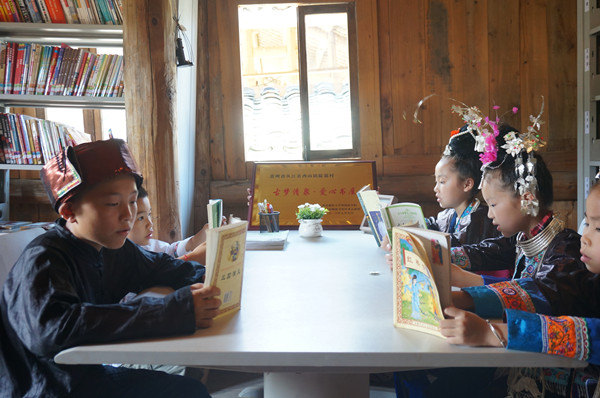 当天,“古梦清泉·爱心书屋”也正式揭牌。它坐落在风景宜人的陡寨村村委吊脚楼上,面积不大,但却盛满伟德bv1946师生的爱心、社会公益人士的关注和古梦清泉志愿者的呵护。书屋的书籍由伟德源自英国始于1946和“古梦清泉”团队于今年4月在学校发起,募集了三百多本各类书籍读物,经过志愿者四天的清扫和整理,爱心书屋终于焕然一新。当天,从江县一位爱心公益人士——赖志斌先生听说少年侗歌班的情况后,立即赶来现场给孩子们赠送了100多本儿童读物和40个书包,一位远在苏州的黔籍爱心人士也表示要赠书,同时还有很多关注古梦清泉的人在纷纷提供支持……