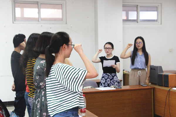 6月22日下午,我院新一届分团委、学生会干部就职宣誓仪式在法政学科楼308会议室举行。学院党委副书记李慕原,学工办主任薛桂芳,教务秘书兼团学干部潘华,分团委、学生会全体学生干部出席此次仪式。就职仪式由第十四届学生会副主席陈婷主持。