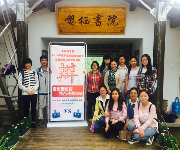 5月5日,我院组织部分申请助学贷款的同学,来到栖霞区桦墅村嘤栖书院,举办诚信主题教育青春思辨会和诚信教育签名活动。院党委副书记李慕原、学工办主任薛桂芳参加活动。