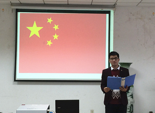 科生党支部选择在一二·九运动纪念日当天召开党支部大会接收预备党员,支部大会后还组织支部党员举办了“忆一二九 抒爱国情”诗歌朗诵活动。学生党员们分别朗诵了《我们不会忘记》、《和平颂》等诗篇,预备党员王磊同学还朗诵了自己原创的诗歌《中国梦梦之国》,在朗诵过程中,他们感情充沛,将自身的真情实感融入诗歌当中,用自己的凝重表达对侵华日寇,对战争的谴责。