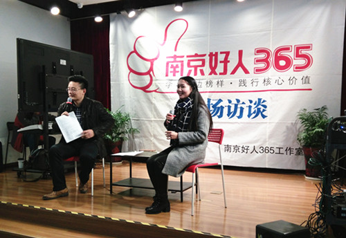 12月8日下午,我院英语1302班石贤同学受邀参与“南京好人365”现场访谈节目录制。前不久,石贤同学由我校推荐参与“南京好人”社会先进模范人物大型评选活动,以她热爱并保护侗族文化的拳拳之心和感恩并传递正能量的反哺之情给大家留下了深刻印象。