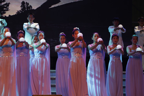 吴楠同学在肢体剧《自习室的故事》中扮演占座女的角色,《自习室的故事》主要讲述了大学生在自习室的不文明行为,呼吁大家要遵守纪律,认真自习。余曼加同学参与了合唱《earth song》的演唱,这首歌曲唱出了对自由和平和美好的呼唤,呼吁我们保护地球。