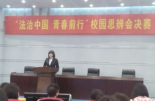 2014年12月5日,由校党委宣传部、校团委主办的“法治中国 青春前行”校园思辨会决赛在仙林校区行政楼二楼报告厅举行,经过初赛的选拔,来自全校各个学院的十名选手就自己对“社会主义核心价值观”及“依法治国”的理解进行演讲并现场回答评委的提问。