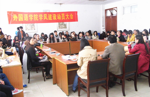李慕原副书记对学院“学风建设月”的具体安排进行了说明部署。此次学风建设月期间,我院将成立院学风领导小组和督导小组进行专项督查,并展开学风建设大讨论,“向学班级”、“乐学寝室”、“善学达人”评比活动,外域“晨读晚诵”,中西方文化论坛,男生成长沙龙及外文经典文学作品朗诵会等活动,致力打造“融贯中西潜心笃志”这一具有浓郁外院特色的优良学风。
