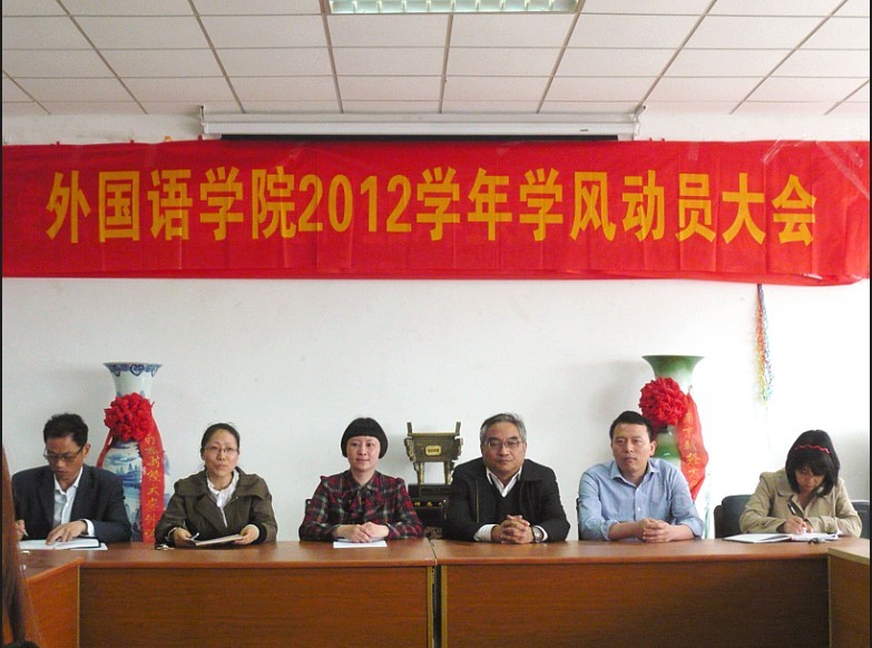 首先肖书记宣布本次学风建设月的督导小组组长及各组成员、强调了学风建设月的重要性并提出对本院学子在纪律以及个人约束,综合素质方面的期望。然后,王院长提出了英语专业就业率的严峻性,他要求外院学子认清形势,严于律己,刻苦钻研,积极参加与专业相关的主题活动,不断努力提高自己视听说各方面的专业技能。孙副院长也做了补充。最后,团总支书记金立林老师还提出在学风建设月期间,我院将会组织一系列主题班会以及主题活动,写作能力测试、英语之窗、学术讲座、专业报告等各方面的活动将会在学风建设月开展。