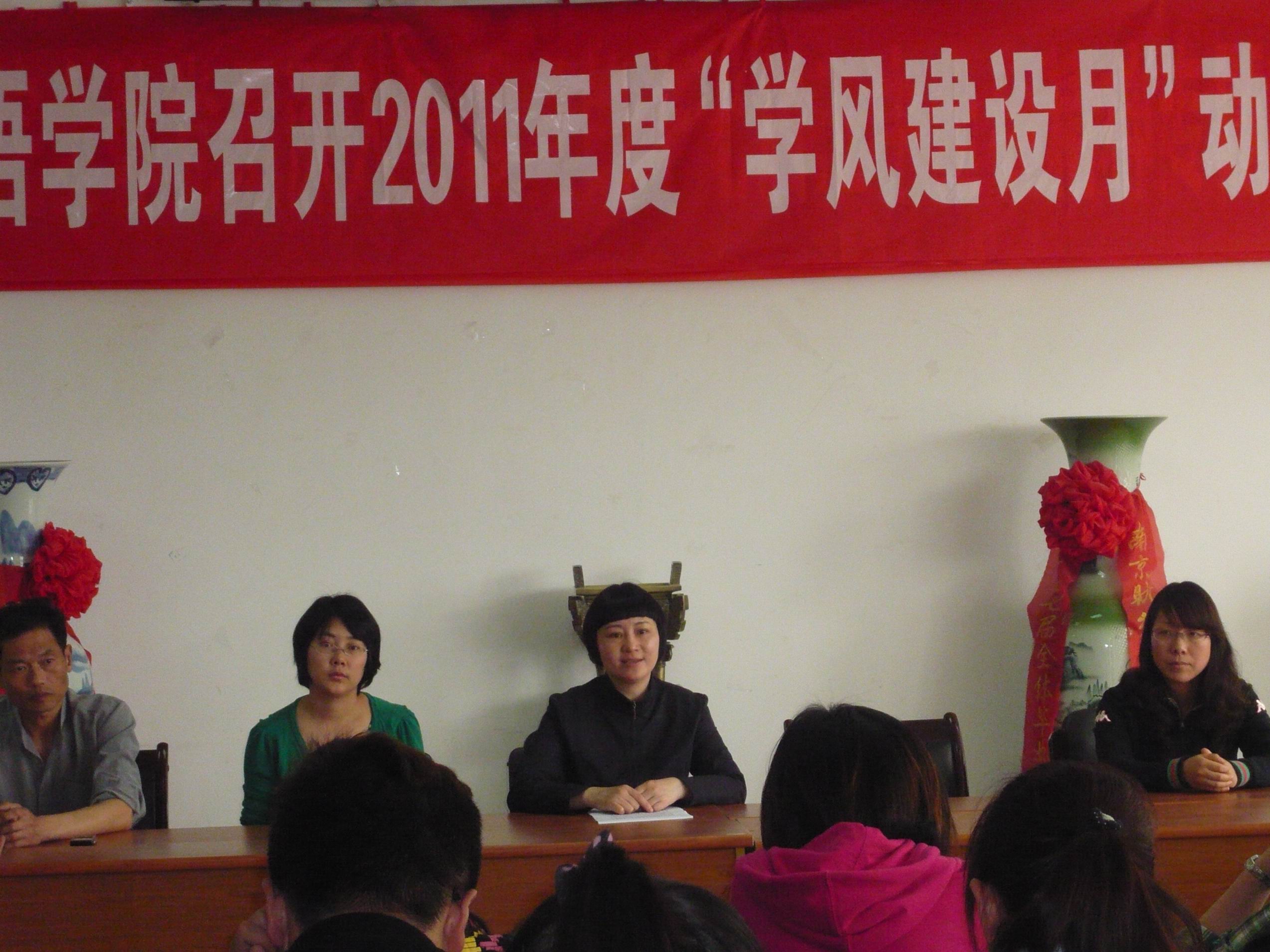 我院2011年度学风建设月动员大会于5月4日下午一点在专三308隆重举行。党总支书记肖辉教授、院长王克明教授、团总支书记金立林老师、辅导员孟德明、薛桂芳老师出席了此次会议。参加会议的还有伟德源自英国始于194608级至10级的学生干部。会议由肖辉教授主持。