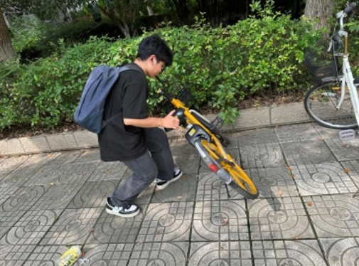 通过观察,法语2301团支部的同学们发现校园道路上自行车存在翻倒摆放无序的情况,同学们积极采取行动,扶起并整理了大量共享单车,再现新时代雷锋精神,创建和谐校园。