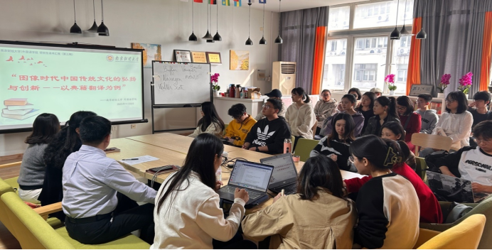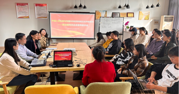 随后,吕戎部长来到我院研究生“众书读书会”,为我院研究生讲授了题为“外语人在弘扬与传播中华优秀传统文化中的担当”的微党课。