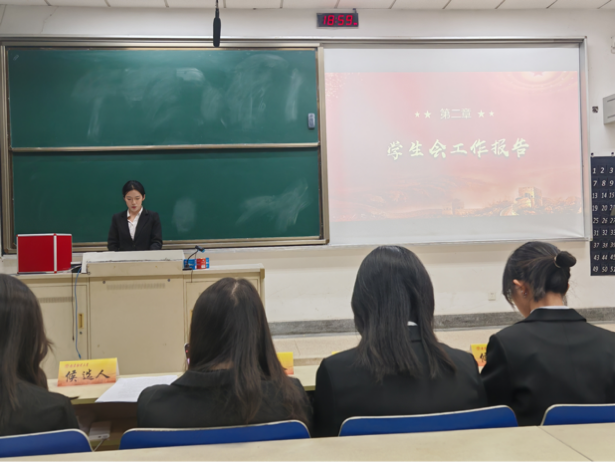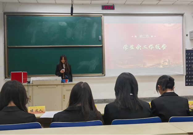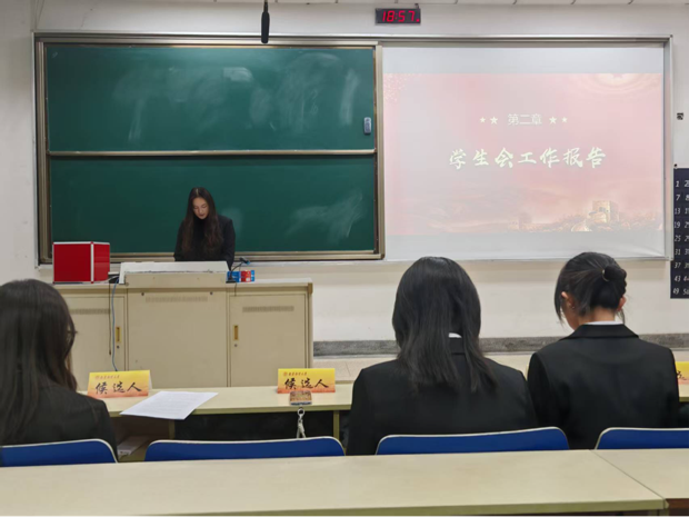 分团委副书记李语馨同学、学生会轮值主席王思雨同学分别就分团委、学生会从思想引领、组织建设、志愿服务等做工作报告,认真回顾以往并对今后工作进行展望。