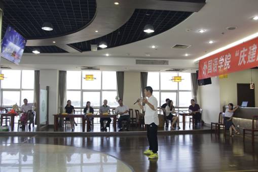 比赛期间,学院老师们还现场演绎经典乐曲:林良山老师的《再见了大别山》、程水英老师的《洪湖水浪打浪》、林良山、游思淳、李丽萍、李群合唱的《国家》、李俊儒教授的京剧《祖国的好山河 寸土不让》,激情高昂,将活动气氛推向高潮。