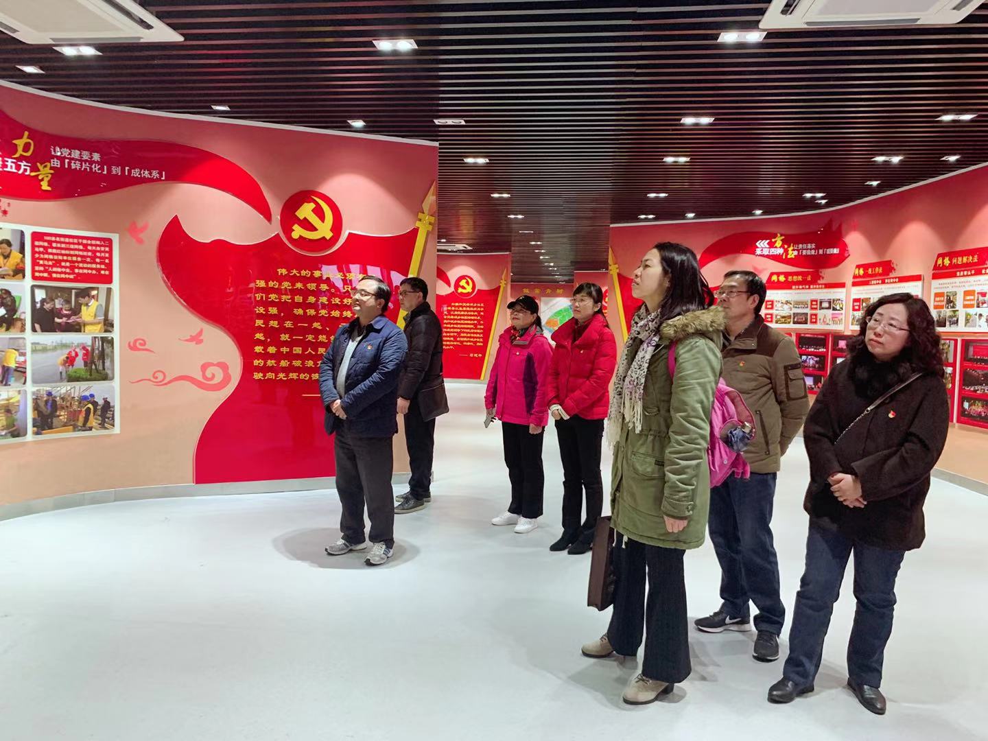 在党群服务中心,全体党员参观了“不忘初心、牢记使命”主题图片展,回顾了从中国共产党第一次全国代表大会到党的十九大所走过的艰苦卓绝的奋斗历程和取得的伟大成就。随后,大家深入了解了仙林街道以网格化党建引领城市基层治理的新模式。