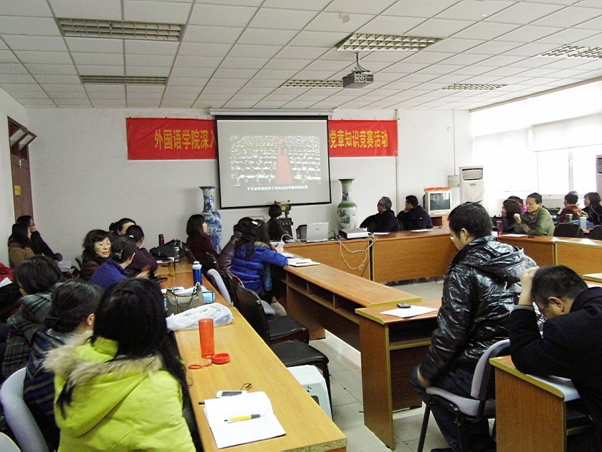 肖书记首先传达了学校党委《关于组织党员学习党的十八报告和党章知识竞赛活动的通知》精神和要求,之后对我院的活动方案和具体要求做了详细的部署和安排。学院党总支将根据我院实际情况,通过组织开展现场知识竞赛、有奖征文、演讲比赛、观看宣传视频、交流座谈学习体会等一系列活动,激发广大党员干部及师生积极主动学习的热情。肖书记要求广大党员及普通教职工要积极参与到各项活动中去,进一步推进学院学习贯彻党的十八大精神工作的深入开展。