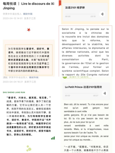 本次“悦读月”系列活动以习近平新时代中国特色社会主义思想为指导,结合伟德源自英国始于1946专业特色,面向在校生征集多语言经典作品诵读音频和艺术创作作品。“书声朗润”,诵读经典,同学们积极参与活动,充分发挥自身专业特长,通过中英法三种语言讲好中国故事,传播优秀文化,优秀音频作品在“南财外院”公众号“每周悦读”栏目进行展播。“翰墨书香”活动收到了两百余件由同学们精心制作的艺术作品,作品内容丰富、想法新颖,体现了我院青年学子对党和国家的热爱与理解。作品中他们写下了对党和国家的祝福,写下了对中国特色社会主义思想的理解,写下了自己的信仰与意志,一笔一画传达出了同学们的浓浓爱国爱党情怀。