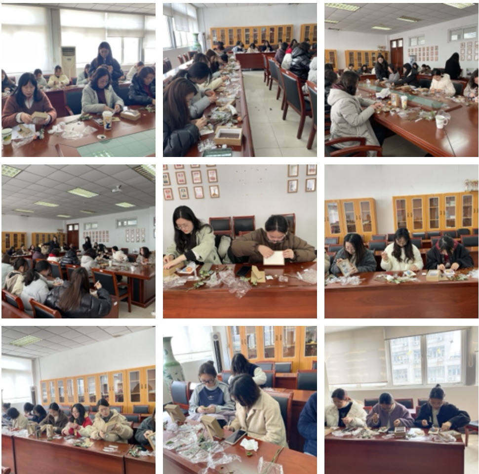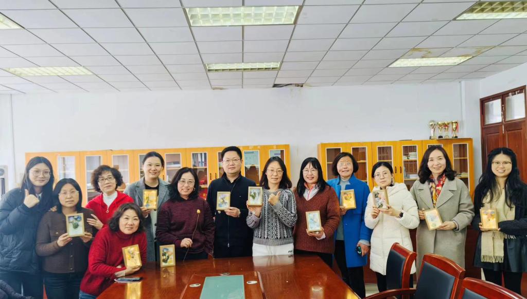 在欢声笑语中,活动拉开了序幕。大家以纸板为底托,用防腐剂处理过的鲜花、仿珍珠、胶水、彩灯等材料,并在花材、构图、搭配等方面各自制作出独一无二的永生花图案。段慧老师上手特别麻利,“这是给我自己的节日礼物。”她说,自己一直喜欢做手工,但平时因为忙于工作无暇顾及,所以这次能有机会“和同事们一起做手工,感觉很奇妙。”