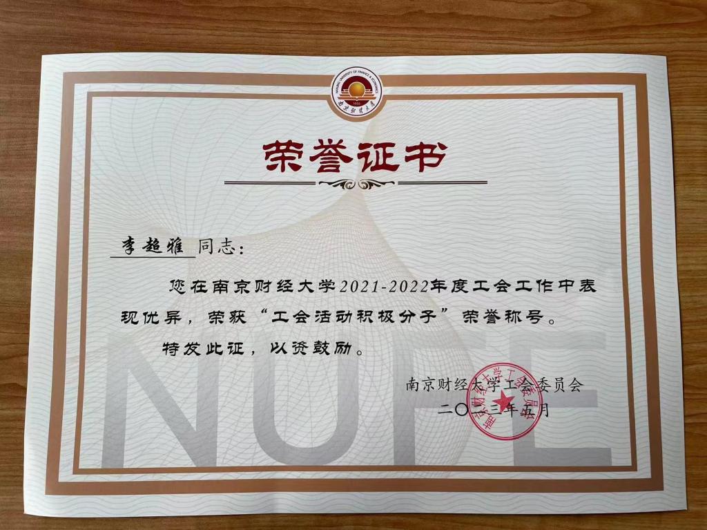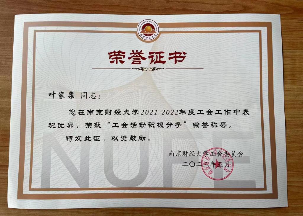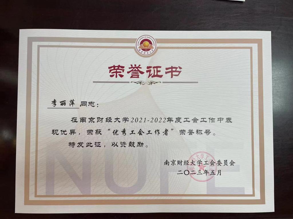 近日,伟德bv1946工会委员会发文表彰了2021-2022年度工会工作先进集体、先进个人。我院分工会荣获“工会工作先进集体”;分工会主席李丽萍荣获“优秀工会工作者”;叶家泉、李超雅、聂平荣获“工会活动积极分子”。