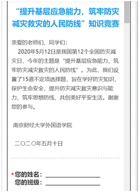 2020年5月12日是我国第12个全国防灾减灾日,正值全国防疫抗疫取得重大阶段性胜利之时,为进一步提升基层应急能力,筑牢防灾减灾救灾的人民防线,5月9日至5月11日,我院分工会举行防灾减灾知识竞赛。